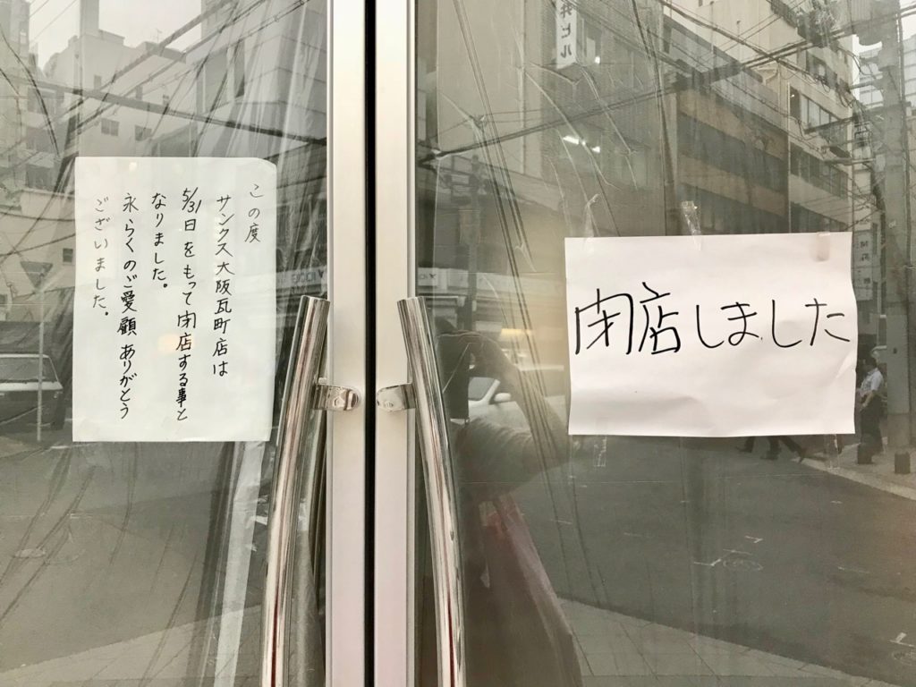 「瓦町公洋ビル」の1階にあった「サンクス大阪瓦町店」が閉店しています。