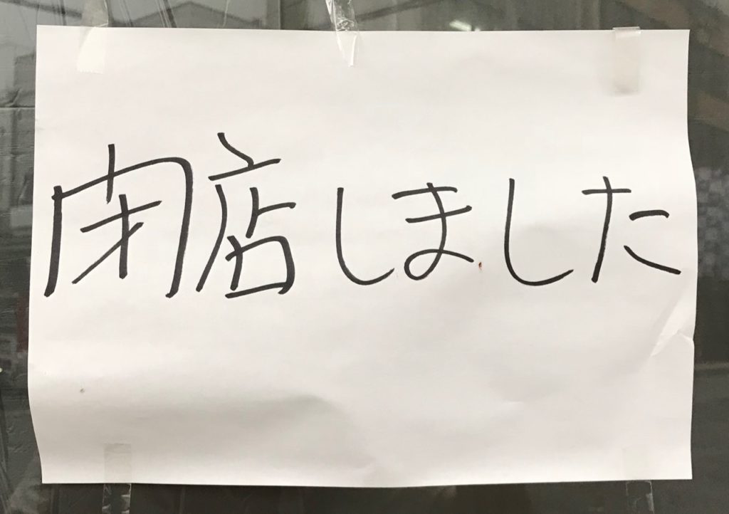 ドアには閉店を知らせる貼り紙が。5月31日で閉店したようです。