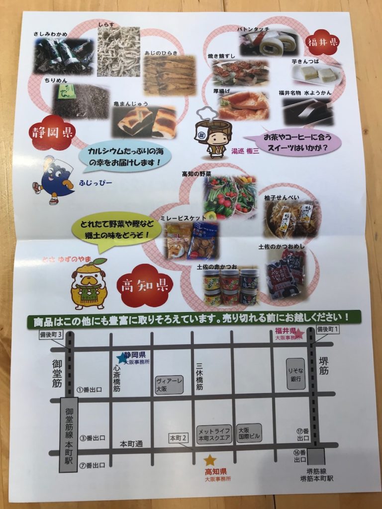 本町にある、静岡県・高知県・福井県の各県大阪事務所で、2月22日・23日、「春のええもん市」が開催されます。
