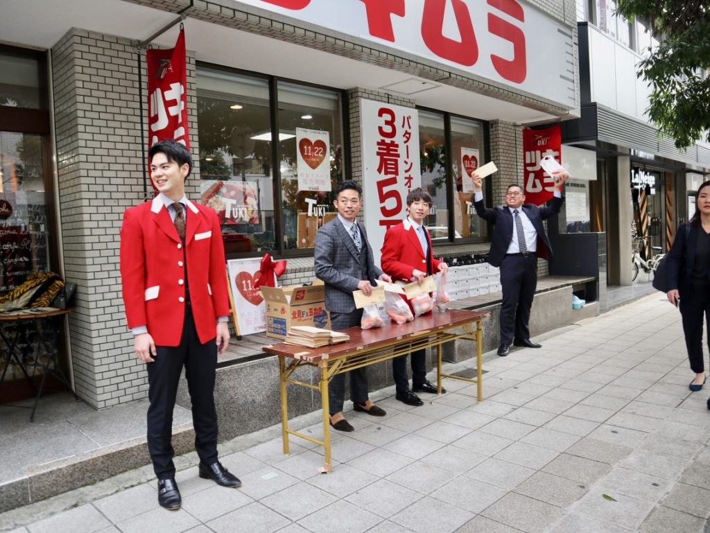 岸専務「我々はスーツ生地の仕入れをしによく北イタリアへ行くんですが、そこでは温かいシチューをよく食べるんです。それがとても美味しくて…今回はそんなシチューを食べるワクワク感をお客様にも味わってほしいという思いで、シチューに使える野菜を配りました!」