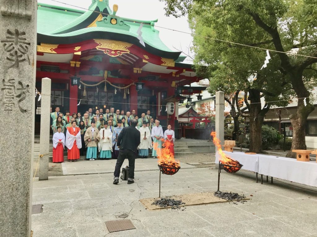 淀屋橋「御霊神社」お火焚き祭&みかんまき