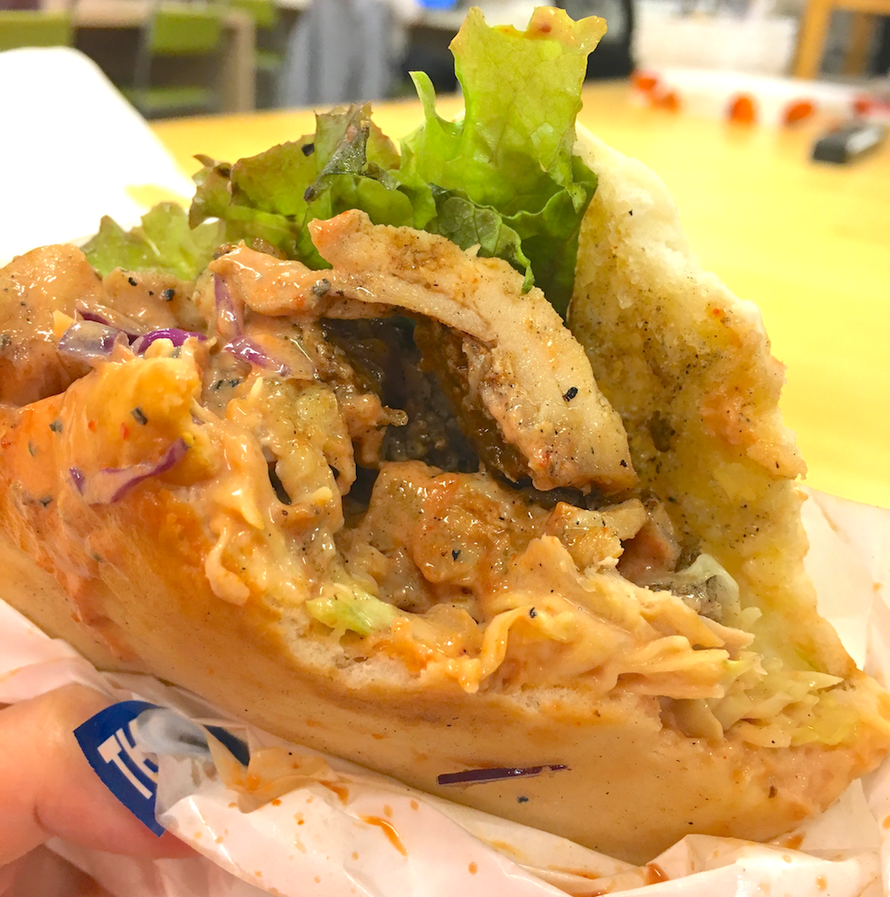 うーん、グリルチキンが香ばしくて、ソースもスパイシーだったりマイルドだったり、いろんな種類が入ってて美味しい…