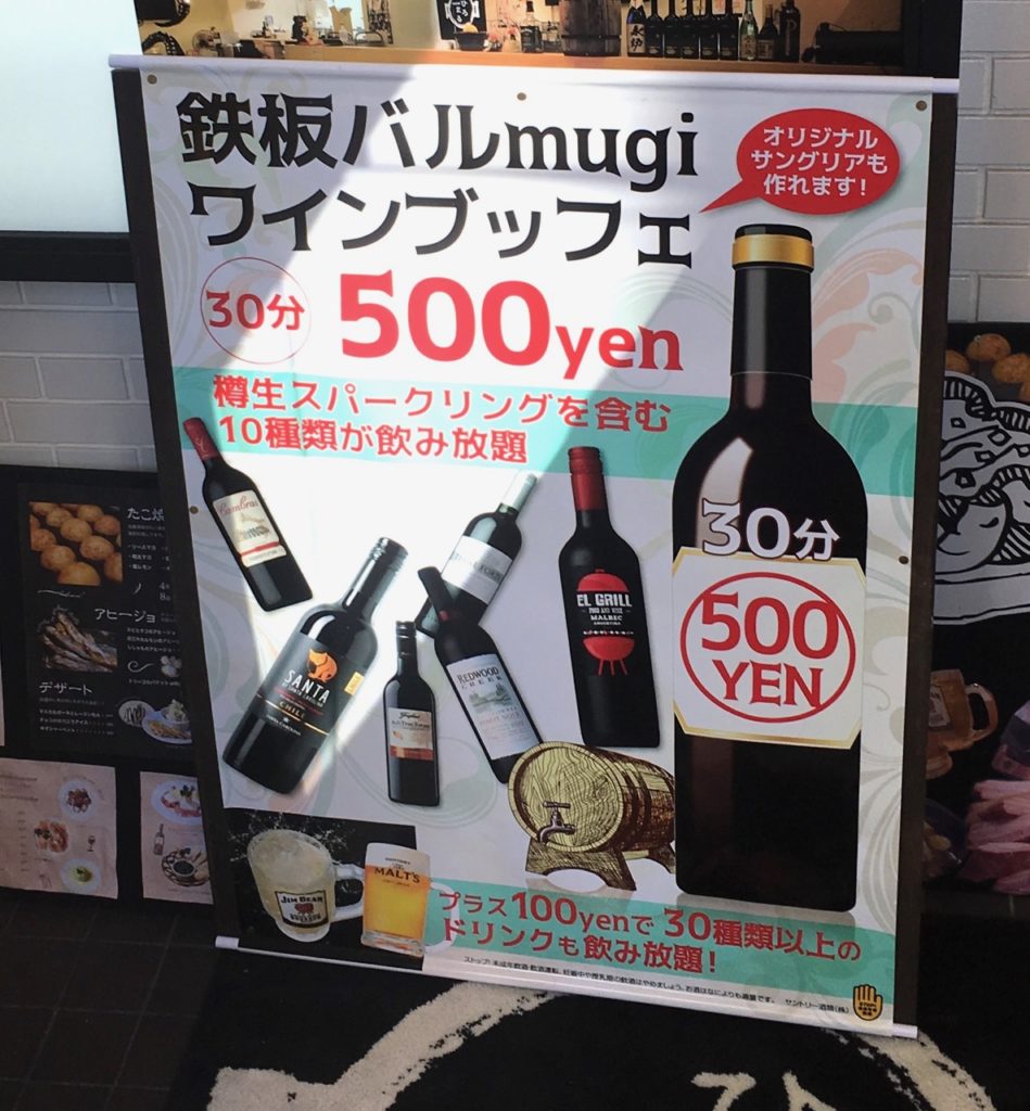 「MUGI」では、夜には30分=500円のワインビュッフェがあり、宴会メニューも充実しているみたいです。