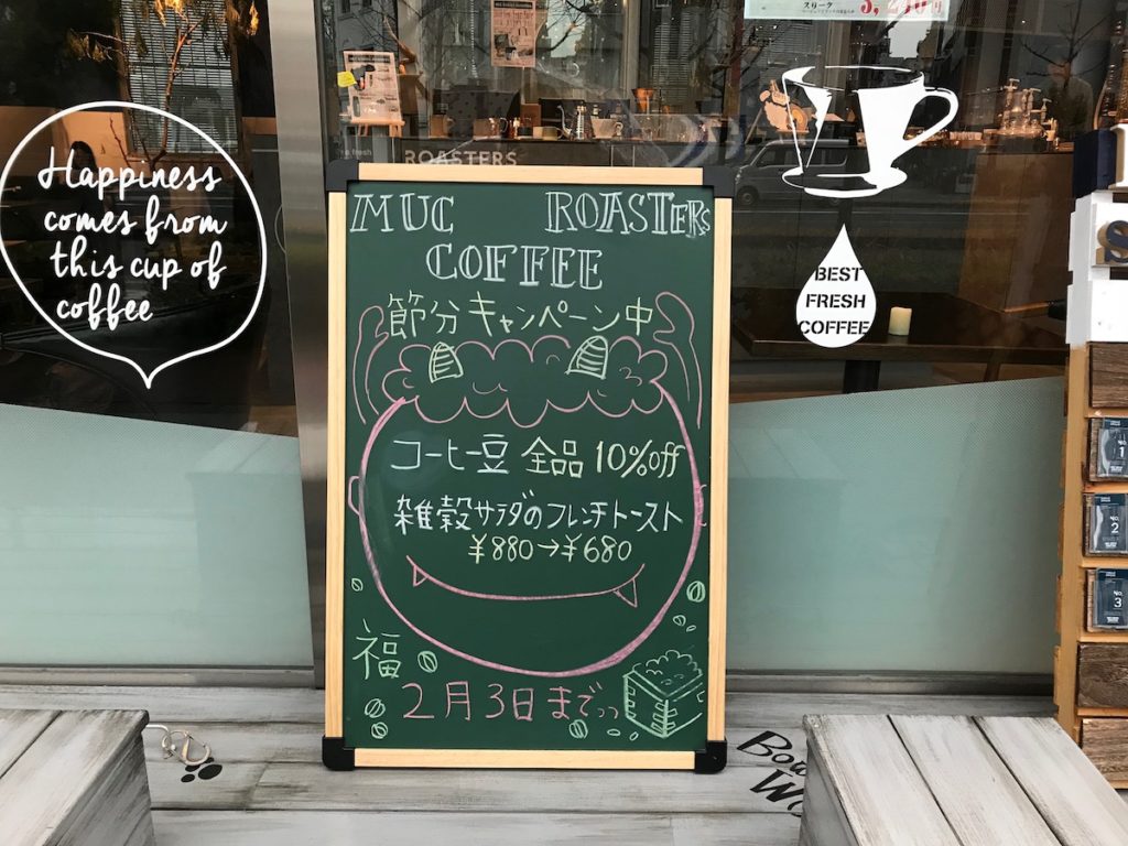 MUC COFFEE ROASTERSうつぼ公園店で、節分キャンペーンを開催中です。