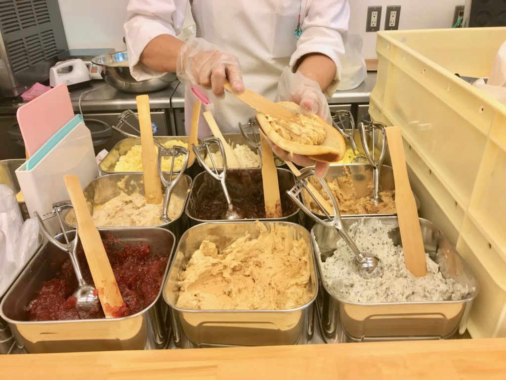 コッペパンは注文するとその場でクリームを挟んでくれました。
