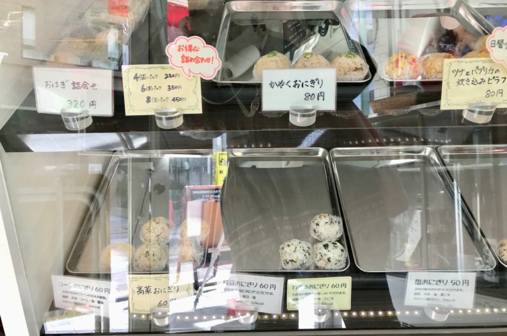 おかずとセットの「おにぎり弁当」も販売してるみたいですが、残念ながらこの日は13時の時点で売り切れ。