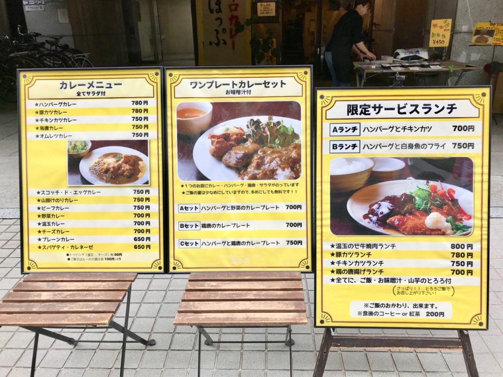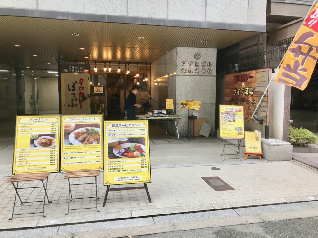 「辛口カレー&ライブ酒場 POP(ぽっぷ)」はランチタイムに前でお弁当を売っています。