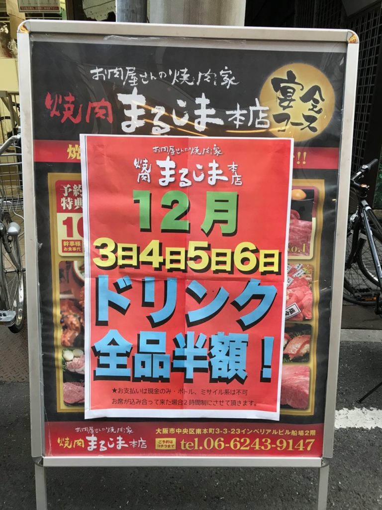 12月3日(月)〜6日(木)の4日間ドリンク全品半額!という宣伝チラシでした。