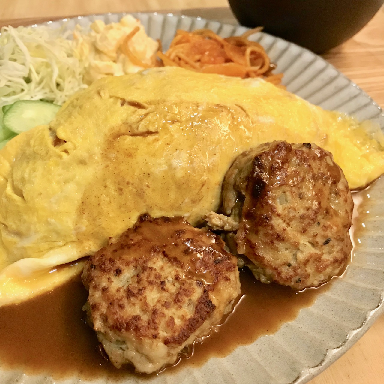 ランチメニューは日替わりの定食とカレーがありました。今日は洋食の気分だったので「オムライスミニバーグプレート」750円を注文!