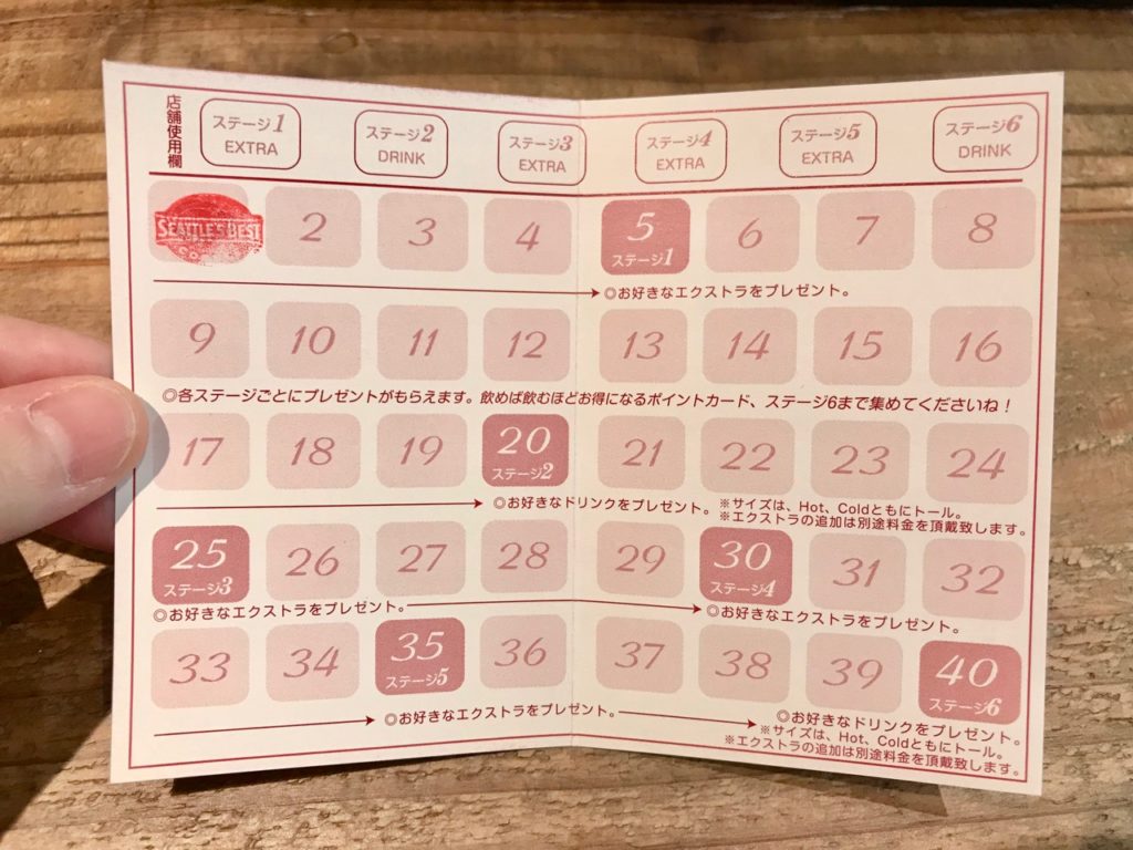 ドリンク1杯ごとに1個貯まるポイントカードでいろいろ良いことがあるみたい。