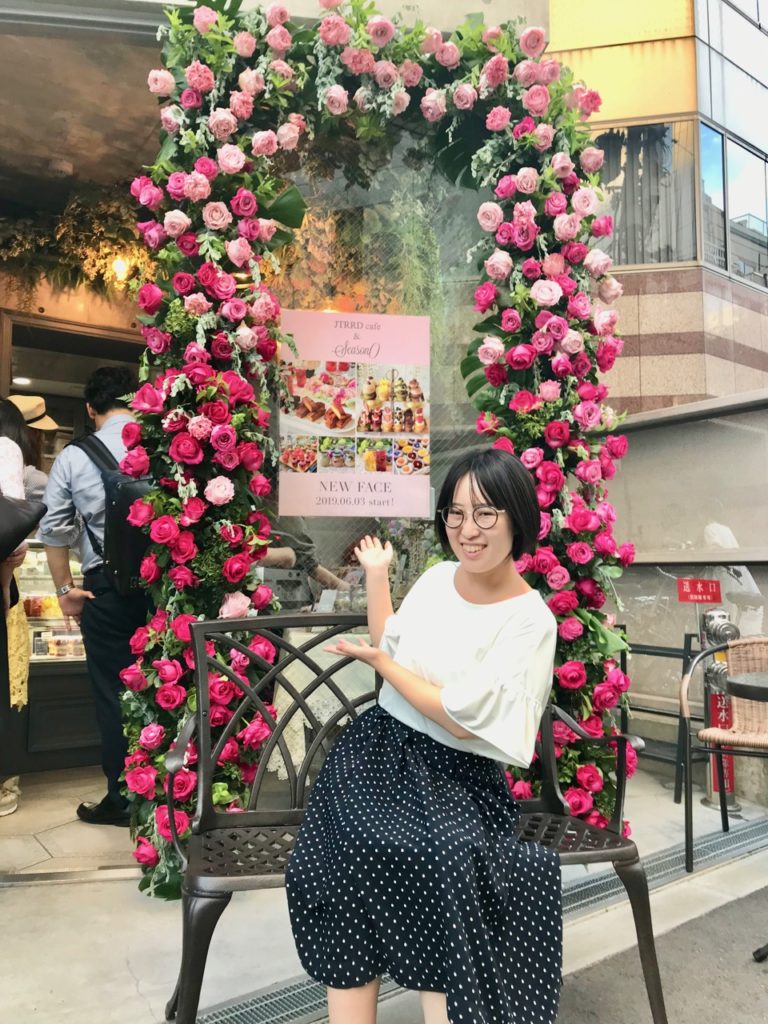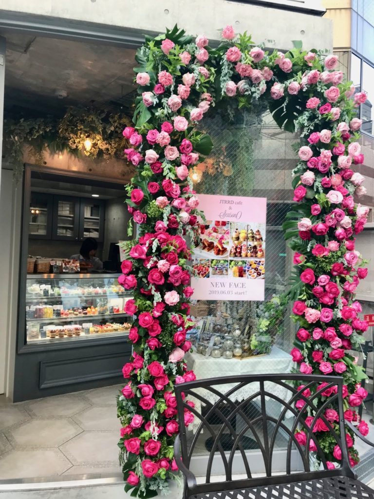 なんと、お店の前には1周年記念で明日(6/4)までバラのアーチが出現しています!