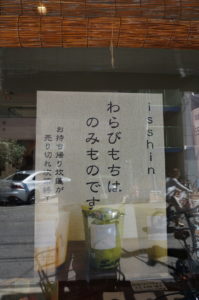 今日は取材の帰り道、わらび餅で有名な和菓子屋さん「isshin」さんの前を通ったところ、こんなポスターを発見。