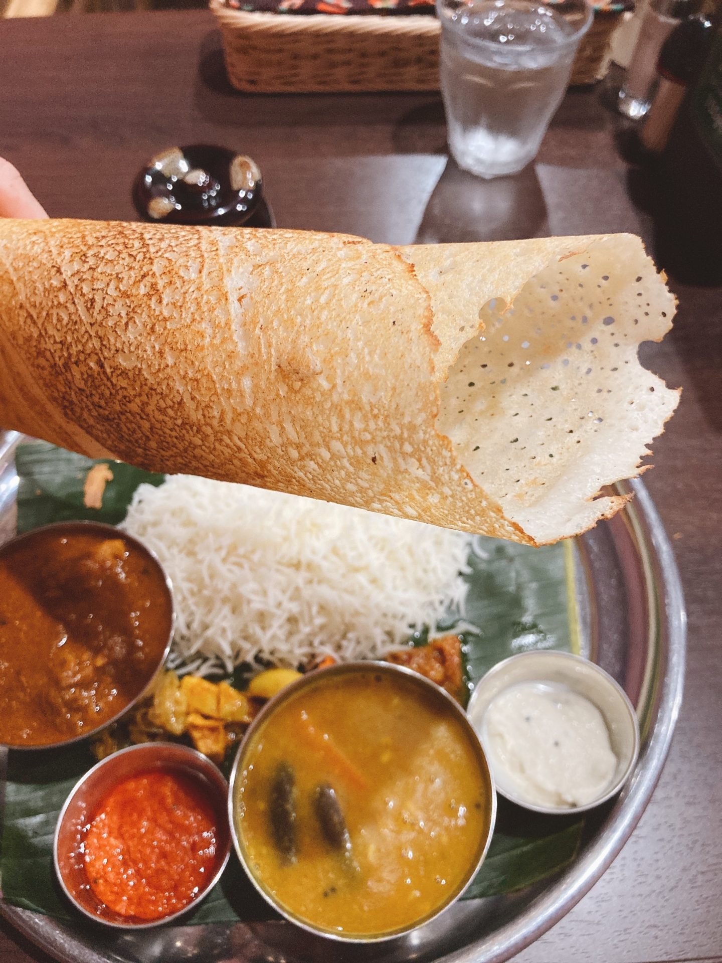 私のお目当ては「ドーサ」と呼ばれる南インド風クレープと、南インドの定食「ミールス」。