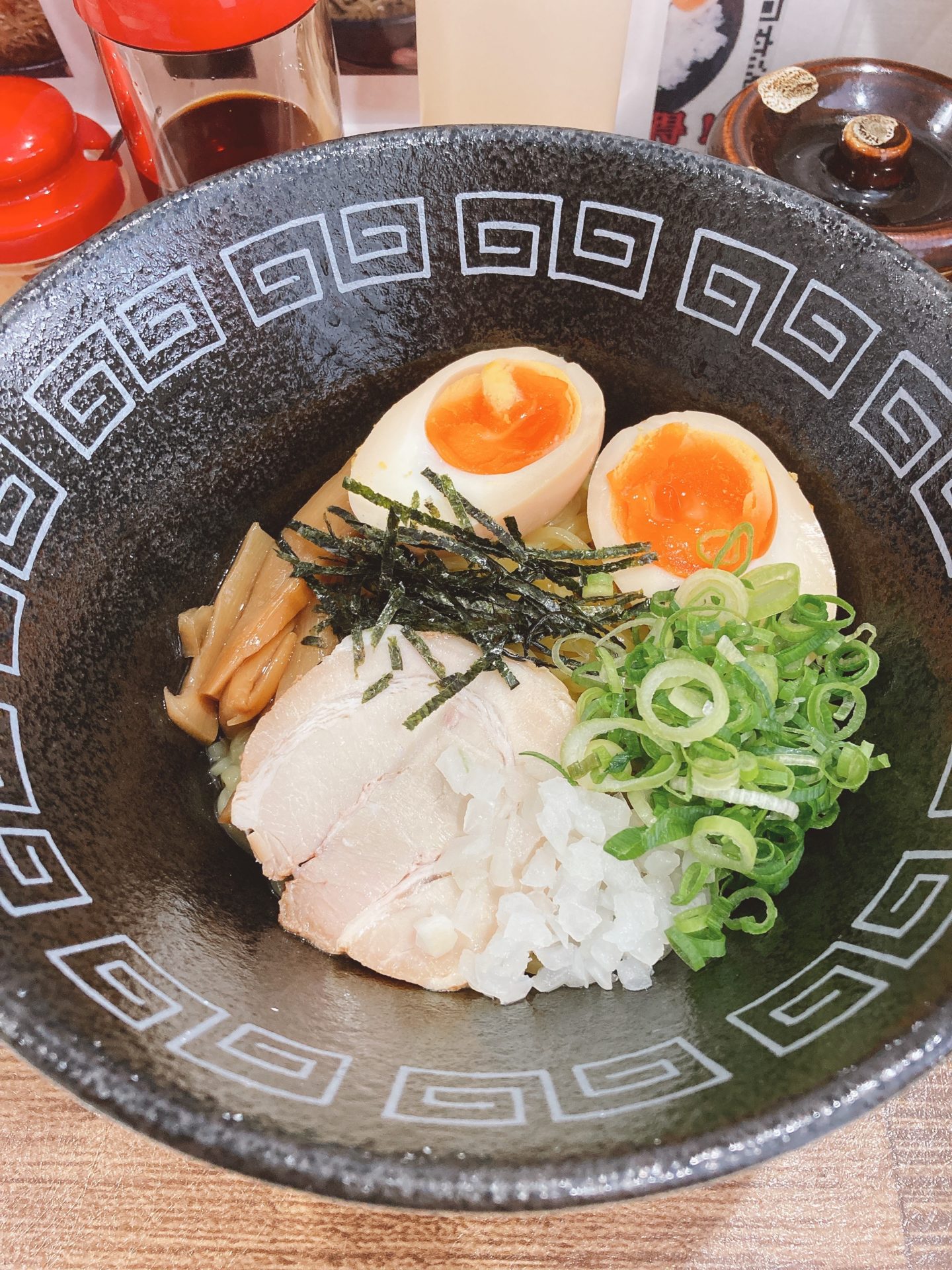 味玉・チャーシュー1枚・メンマ・刻み玉ねぎの「トッピング全部のせ」にすると、それぞれ700円と750円になります。