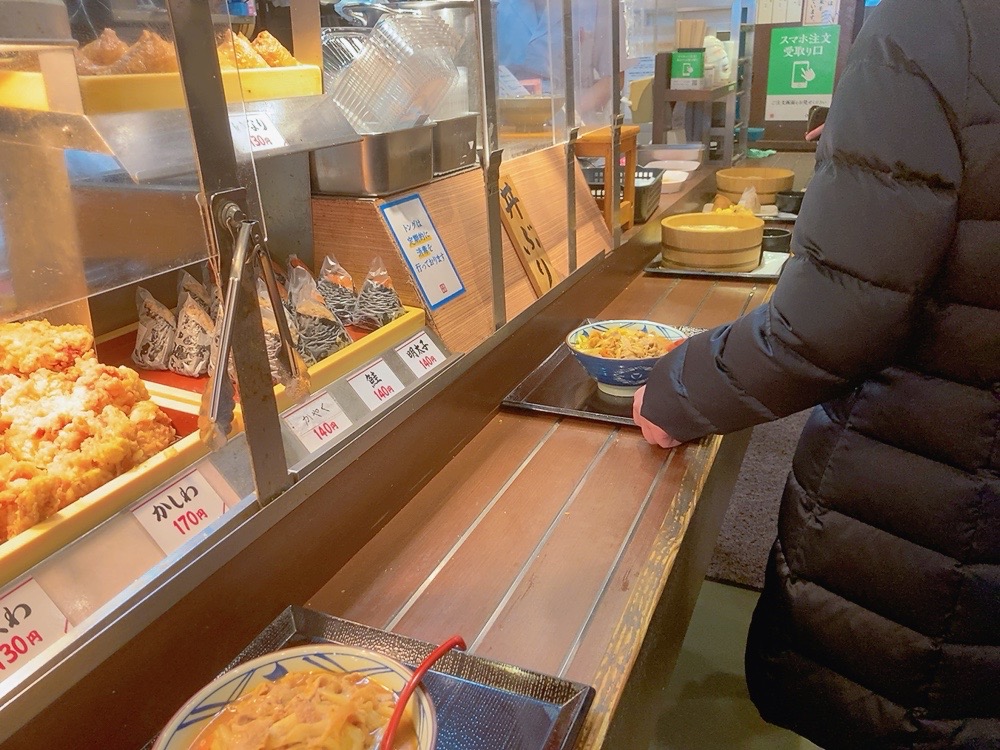 私、丸亀製麺のかき揚げと半熟卵が好きなんですよねー。でも今回は本体がボリュームあるメニューなのでやめときました。