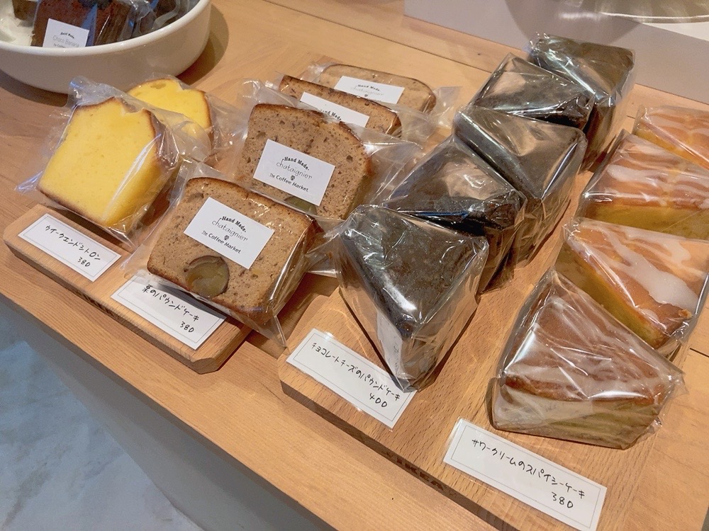 「ウイークエンドシトロン」「栗のパウンドケーキ」「サワークリームのスパイシーケーキ」(以上380円)、「チョコレートチーズのパウンドケーキ」(400円)などのパウンドケーキや