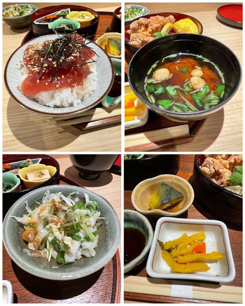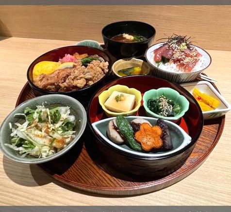 メニュー豊富で迷いましたが、前から気になっていたおかずが入った二段のお重とまぐろ丼が付いた御膳✨