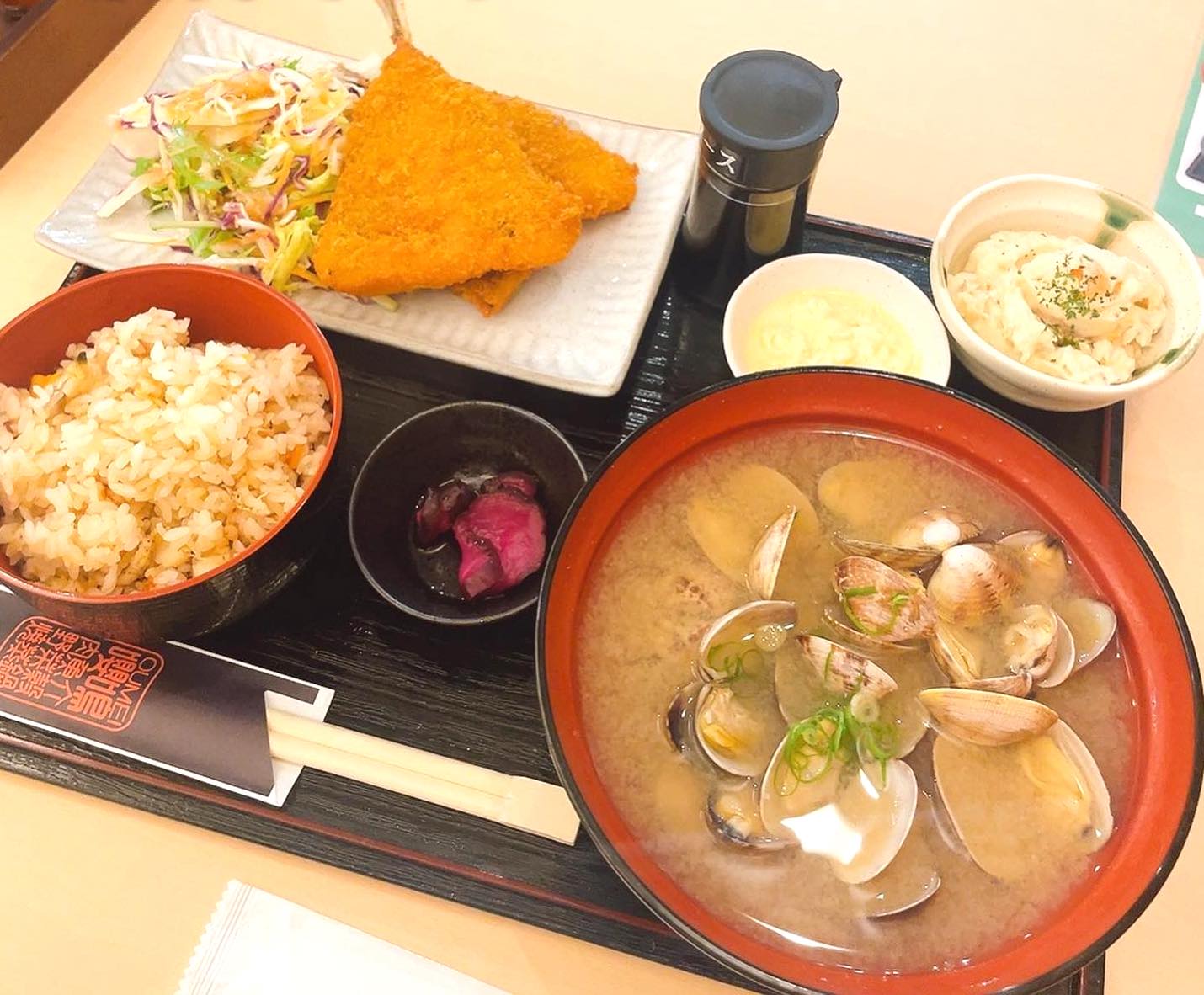 貝飯と貝汁は少し薄味かな🥲