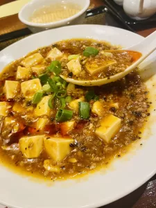 麻婆豆腐はゴロゴロミンチが入った、食べ応え抜群の一品。