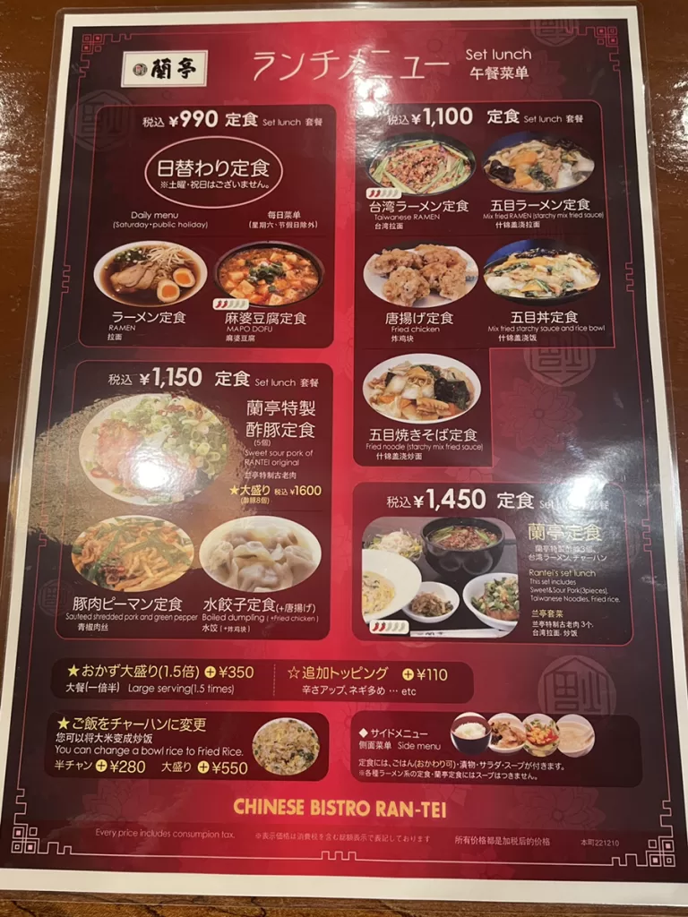 こちらはいつも本町で大人気の中華ランチ「チャイニーズ・ビストロ 蘭亭」の新店。
