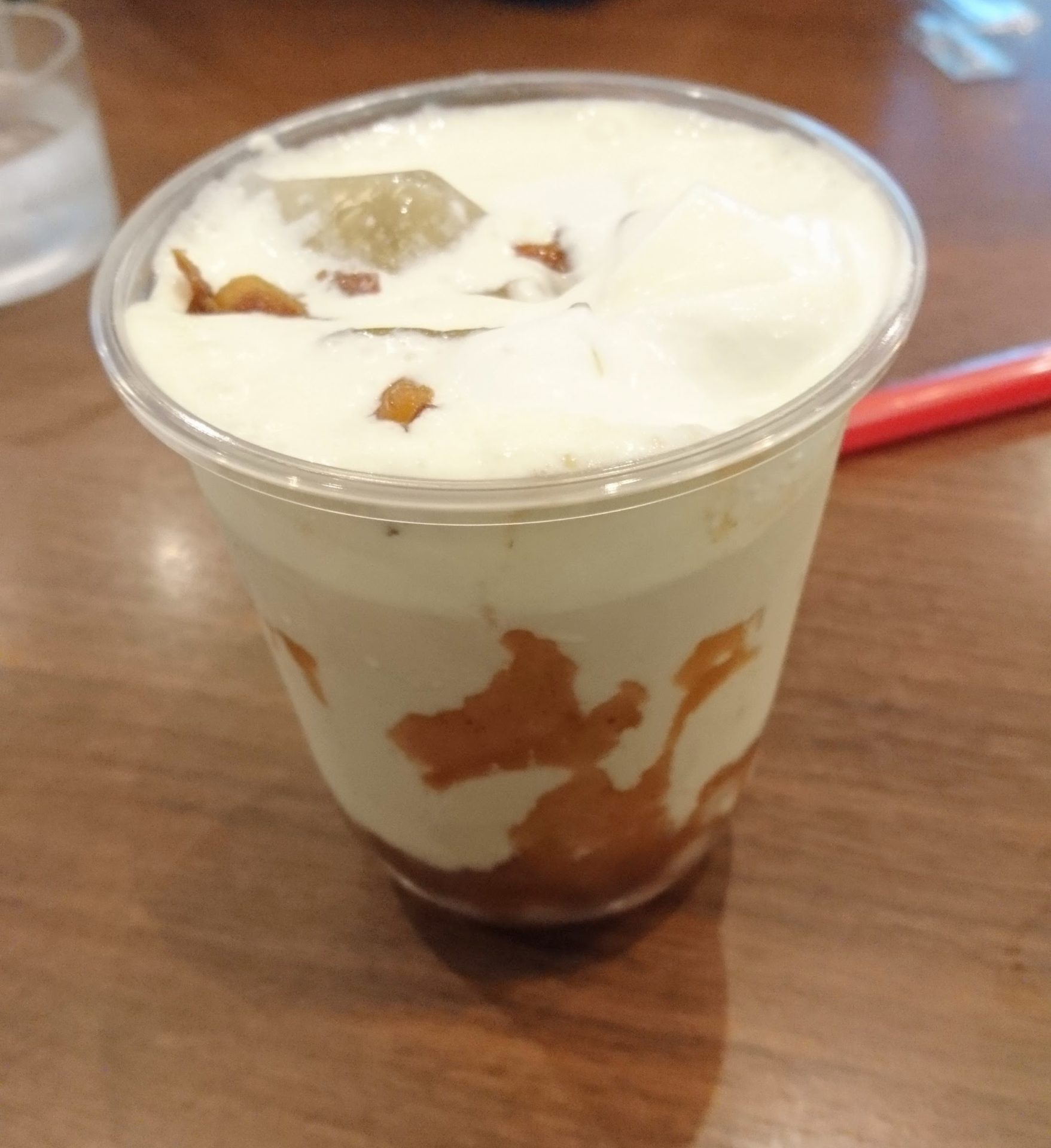 このドリンク、タピオカ・白玉のほか、甘栗をきざんだものが沈んでいました。