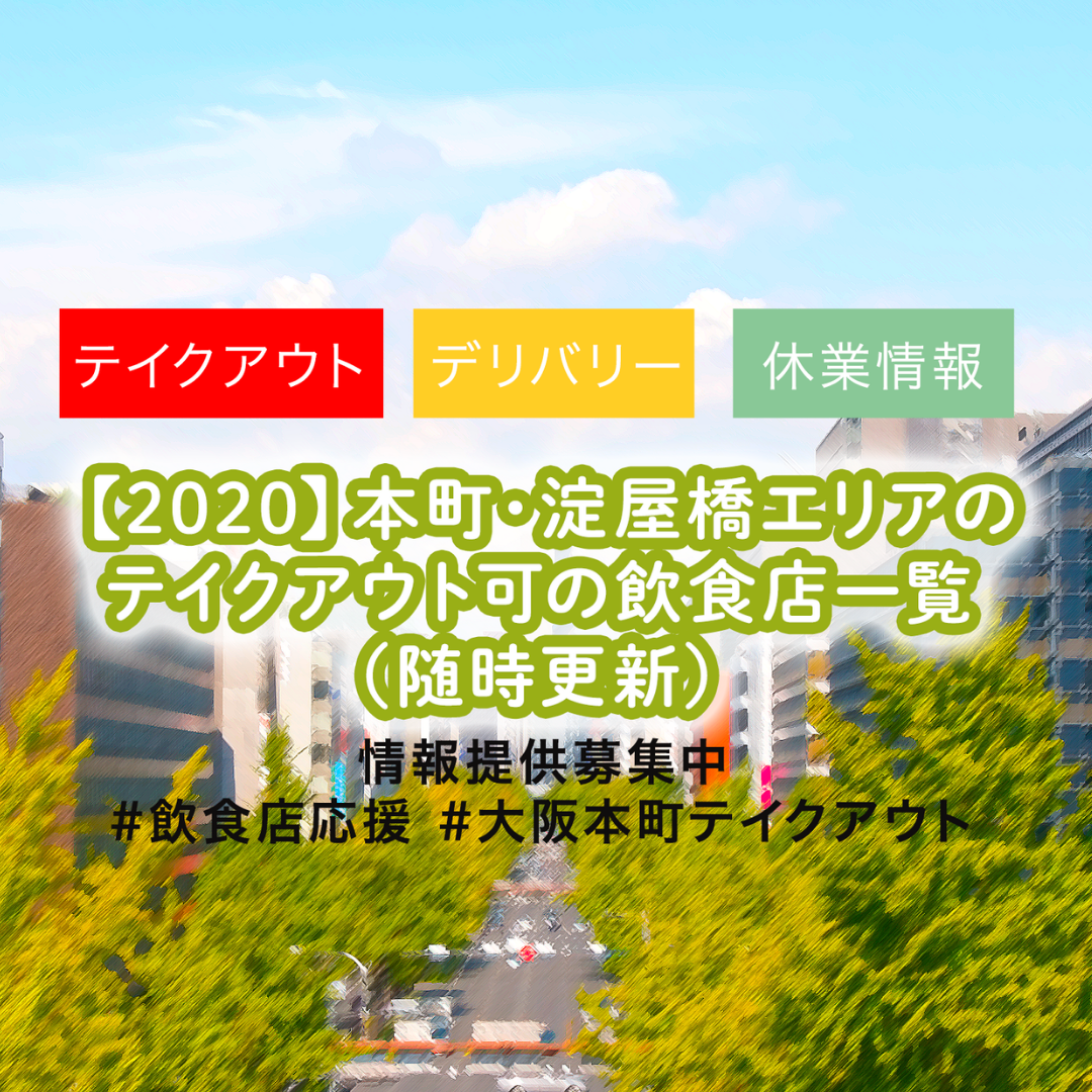 本町ブログでは、新型コロナウイルス感染拡大の影響を受け、大阪・船場エリアの飲食店のテイクアウト情報を伝える特設ページを開設しました。(デリバリー情報、休業情報の掲載も準備中)